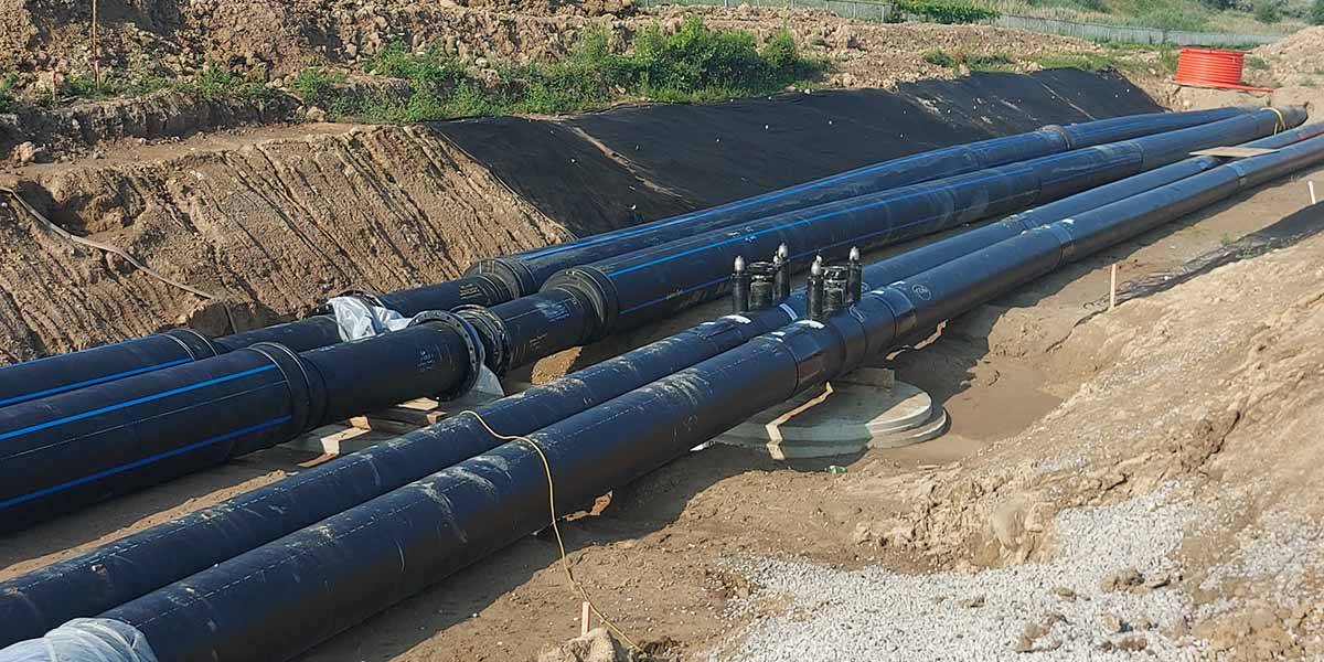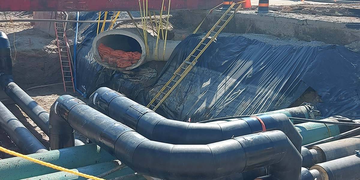 - Installation of piping in existing, congested roadways. To accommodate utility clearances and space constraints, piping was installed in a stacked (2×2) configuration.